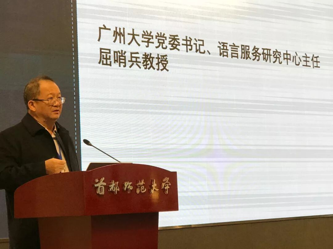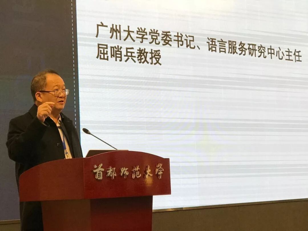 广州大学党委书记、语言服务研究中心主任屈哨兵教授、北京市语委办公室王栋主任、首都师范大学文学院院长马自力教授先后致辞。