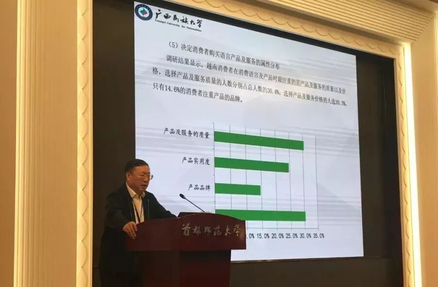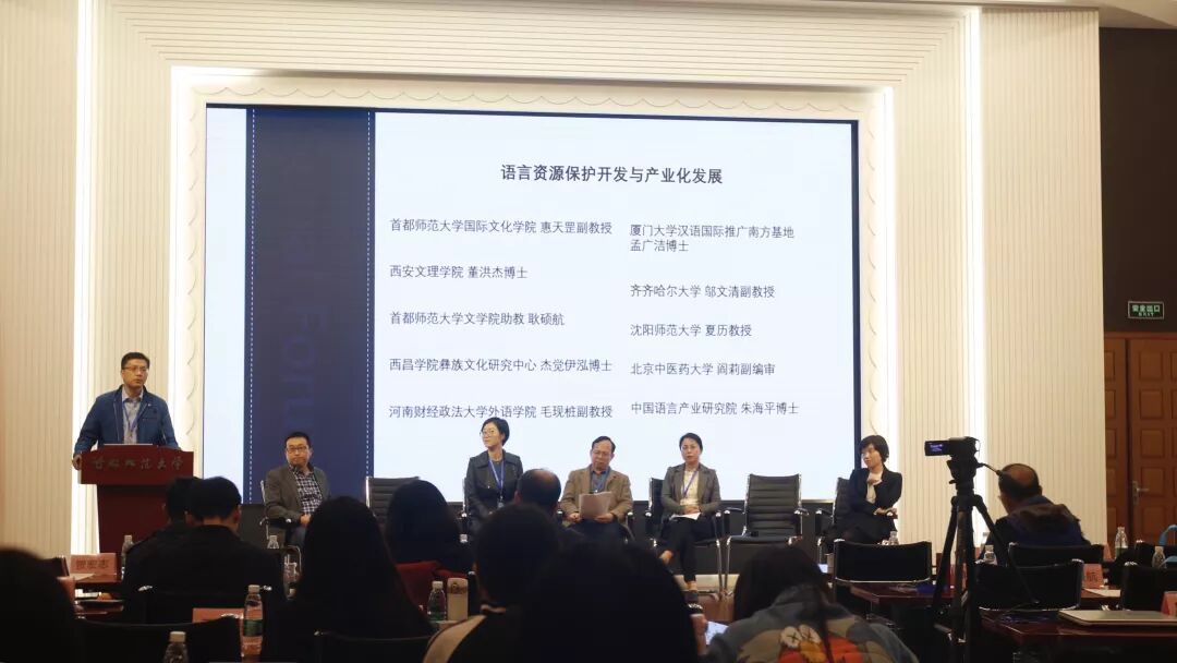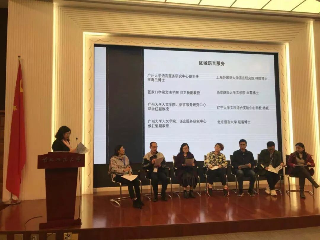 北京语言大学语言资源高精尖创新中心主任、中国语言产业研究院名誉院长李宇明教授从粤港澳大湾区的基本语言特征、语言产业与服务的需求背景、语言能力建设要求以及语言产业与服务发展对策四个方面讨论了粤港澳大湾区语言产业与服务问题,希望在提升大湾区语言能力的基础上,使包含语言技术在内的语言产品与服务成为生产力,推动大湾区的经济与社会发展。 广州大学大学党委书记、语言服务研究中心主任屈哨兵教授介绍了粤港澳大湾区建设中的语言问题。屈哨兵教授基于空间格局,提出了“示范”“呼应”“融通”“互渗”“服务”五条策略建议;基于领域格局,对大湾区语言建设提出了四条建议:第一,“双通”相谐,并行而不悖;第二,效率优先,做好语言服务;第三,在中小学及幼儿园重视多语多方言能力的培养;第四,融通利导,有所选择。 广西民族大学党委书记、广西中华民族共同体研究院院长卞成林教授向大家介绍了“语言消费视域下东盟国家语言产业发展研究”,以越南为例,对东盟国家语言消费行为进行了分析,同时,又从“国际合作助力语言产业发展”“国际贸易发展现状”“跨国人口流动规模日益增加”三个方面分析了语言产业的发展趋势。从“政府层面”和“企业层面”对语言产业发展提出了五点建议。 武汉大学中国语情与社会发展研究中心主任赵世举教授的报告题目为《语言资本的“市场”路径》。他认为,语言资本是一个主体所拥有的语言资源和语言能力的总和,包括掌握语种和方言的数量及质量、语言技能水平、语言资本运作能力等要素。语言资本是人力资本的一个要素,也是获得其他人力资本的资本。语言资本可以是个人资本、家庭资本,也可以体现为集体(组织、机构、群体)资本,乃至国家资本。当今,由于社会的深度信息化、语言技术和人工智能技术的发展,促使语言的功能及价值不断提升,随之,语言资本也更显重要,相应的“市场”前景可期。语言资本的人力资源市场、语言教育市场、语言技术市场、语言资源市场和语言信息资源市场值得关注。 澳门理工学院澳门语言文化研究中心执行主任周荐教授探讨了粤港澳大湾区发展建设中的文化使命。语言的恰当使用,可使人情感交融,使社会走向和谐,在过去的数百年间,中、葡、英三种语言的合力作用,使澳门形成了中华文化主导下的特殊文化;新的历史条件下,深入研究此特殊文化在粤港澳大湾区和谐社会建设中的重要作用,并使之进一步发扬光大,是时代赋予我们的新的使命。 科大讯飞股份有限公司教育事业群副总裁、广东讯飞启明科技发展有限公司总经理汪张龙先生介绍了“全球中文学习平台”建设中人工智能技术的应用。汪张龙先生从普通话考生、中小学生、少数民族、贫困人口、海外学习者五个角度分析了当前中文学习的广泛需求。与此需求相对应的是统一、权威智能的中文学习平台的缺乏问题。“全球中文学习平台”旨在利用人工智能和互联网等先进技术手段,打造聚焦中文学习及中华文化传承传播的智能语言学习平台,使其发展成为全球中文学习第一门户。科大讯飞提供人工智能核心技术服务,满足各类应用需要,形成共创、共享、开放的中文学习合作生态。 下午的对话板块一“语言资源保护开发与产业化发展”由首都师范大学国际文化学院惠天罡副教授主持。河南财经政法大学外语学院毛现桩副教授介绍了对我国语言产业的经济贡献度相关问题的关注情况;西安文理学院段舟杨博士、董洪杰博士介绍了“西安语言产业现状与发展策略”;西昌学院彝族文化研究中心杰觉伊泓博士介绍了近年来彝语产业的发展;厦门大学汉语国际推广南方基地孟广洁博士介绍了菲律宾汉语学习者对汉语经济价值的认知情况;齐齐哈尔大学邬文清副教授介绍了黑龙江省域内少数民族语言产业现状调查情况;沈阳师范大学夏历教授分享了对留学生列举类词语使用情况的相关调查。 对话板块二“区域语言服务”由广州大学语言服务研究中心副主任王海兰博士主持。张家口学院邓卫新副教授探讨了2022年冬奥会背景下,地方高校创新人才培养体系建设需要深入研究的问题以及具体对策;广州大学语言服务研究中心邓永红副教授从客家话乡土教材和字词典的编写、传统媒体和新兴媒体对客家话的传承角度讨论了客家话的传承情况;上海外国语大学语言研究院林皓博士分析介绍了当前我国的手语服务问题及对策;西安财经大学文学院申宵博士讨论了新时代语言服务的现象、本质和实践路径;辽宁大学文科综合实验中心助教杨城基于民族语言服务视角分析了沈阳西塔街店名语言景观实态调查情况;北京语言大学赵运博士具体分析了NGO语言服务的内容、形式和特征,总结了语言服务对NGO目标实现的影响以及对其他国际主体语言服务的影响;广州大学语言服务研究中心侯仁魁副教授从计算语言学角度对语言服务问题进行了思考。 《语言战略研究》执行主编、暨南大学郭熙教授对两个对话板块的讨论进行了点评。 下午的主旨报告由广州大学人文学院副院长、语言服务研究中心执行主任禤健聪教授主持。 北京语言大学汉语国际教育研究院常务副院长吴应辉教授展望了汉语的广阔发展前景。吴应辉教授提到,随着我国国家实力的不断提升,各国需要大批的汉语