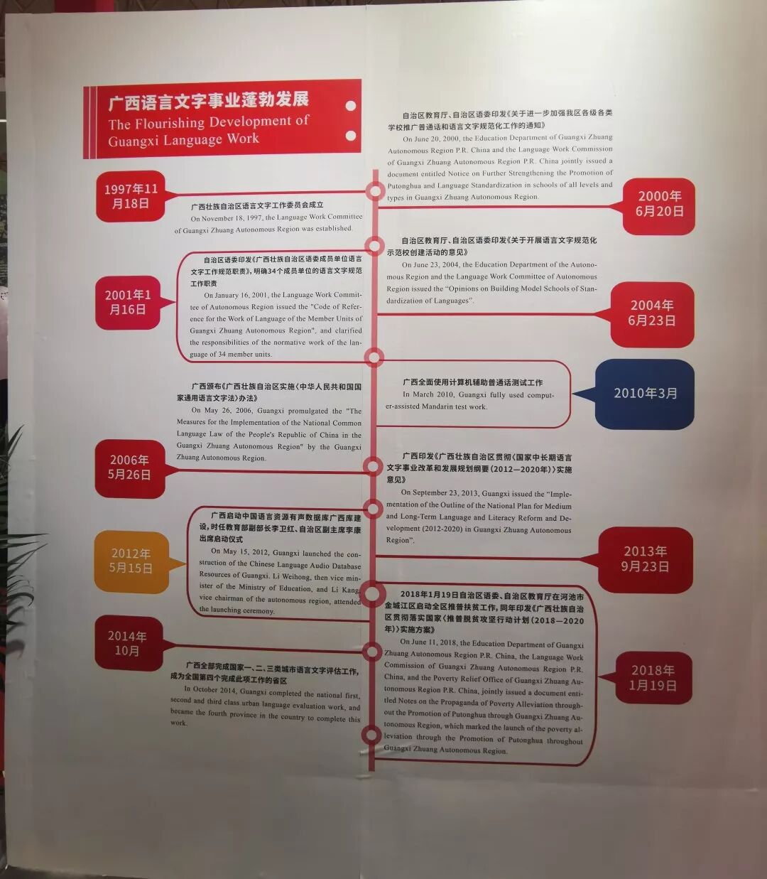 广西壮族自治区语委是语博会上首家以省区名义参展的单位,也是首家参展的少数民族区域。展览内容除了广西语言文字工作成就外,广西民族大学语言文化博物馆、贺州学院语言文化博物馆,作为国内高校首批以语言文化为主题的博物馆,壮族语言文化和广西地方特色浓郁的汉语方言文化,其介绍给专业观众留下深刻的印象。